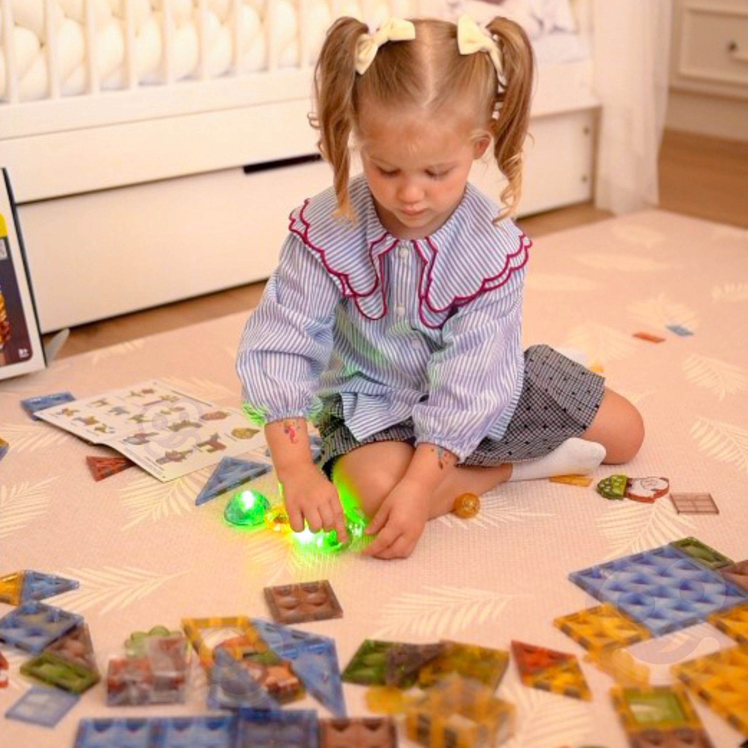 - Brille dans l’obscurité : des éléments spéciaux illuminent chaque construction.