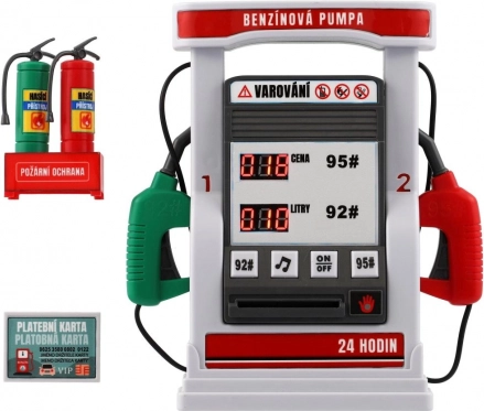 Le set comprend deux tuyaux de ravitaillement, une carte de paiement, des équipements d’incendie et d’autres accessoires qui créent un environnement réaliste de station-service. L’emballage compact est idéal pour jouer à la maison comme en déplacement.
