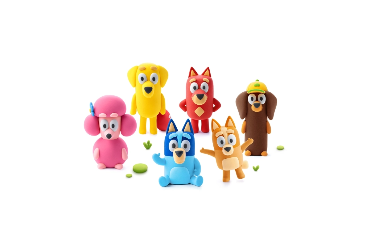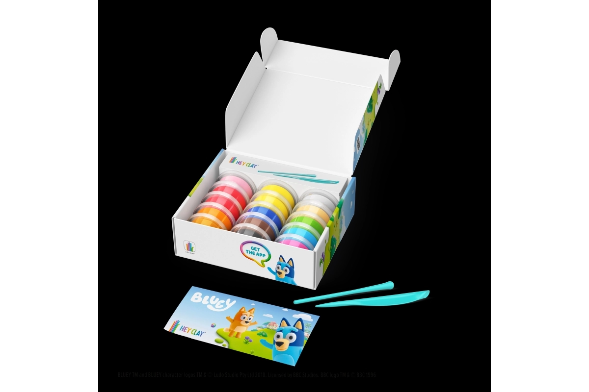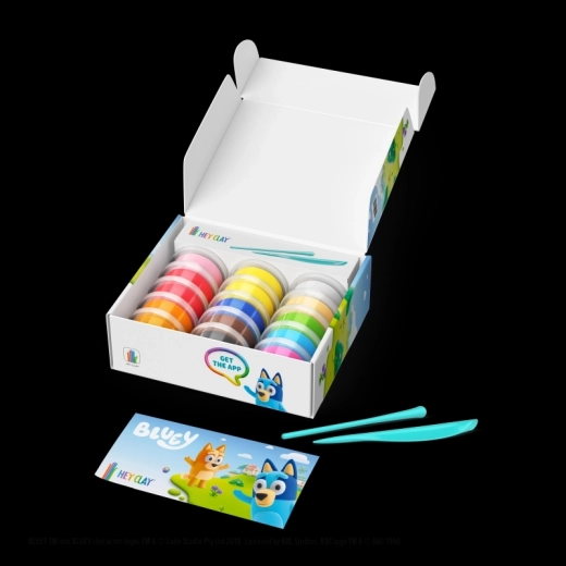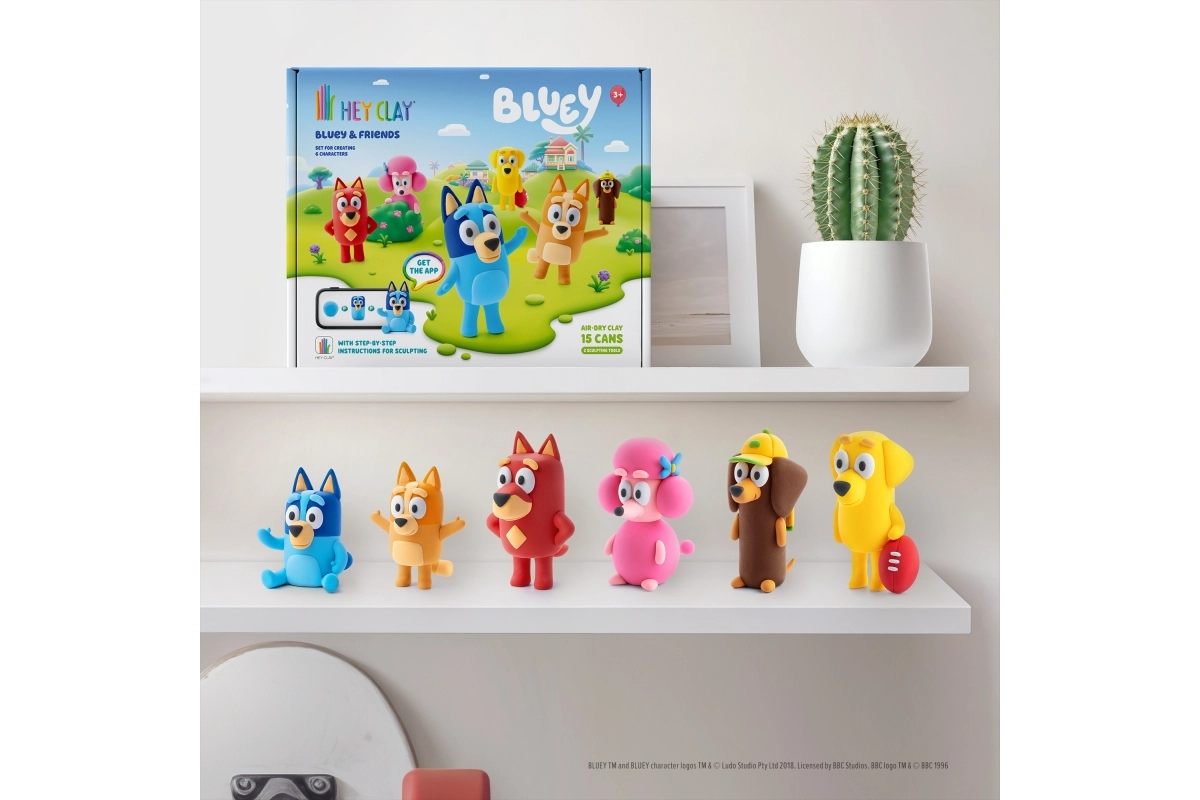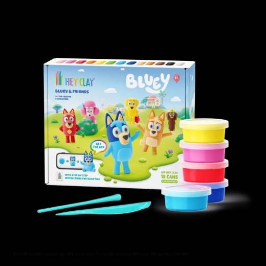 Découvrez un univers créatif avec la pâte à modeler HEY CLAY et le coffret Bluey et ses amis. Créez les six personnages préférés – Bluey, Bingo, Lucky, Snickers, Coco et Rusty – grâce à une pâte colorée et légère et à des instructions interactives dans l’application. Une fois sèches, les figurines durcissent et sont idéales pour jouer et collectionner.