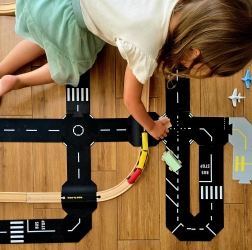 Élargissez l’univers des routes pour enfants avec un passage à niveau réaliste. L’ensemble comprend un élément innovant pour relier les routes aux rails en bois (compatible avec BRIO et MAXIM), une pièce réversible avec rond-point et carrefour en X, le tout formant 8 pièces de puzzle en silicone résistant. Connexion facile, flexibilité et possibilité de jouer dedans comme dehors raviront les petits conducteurs dès 1 an.