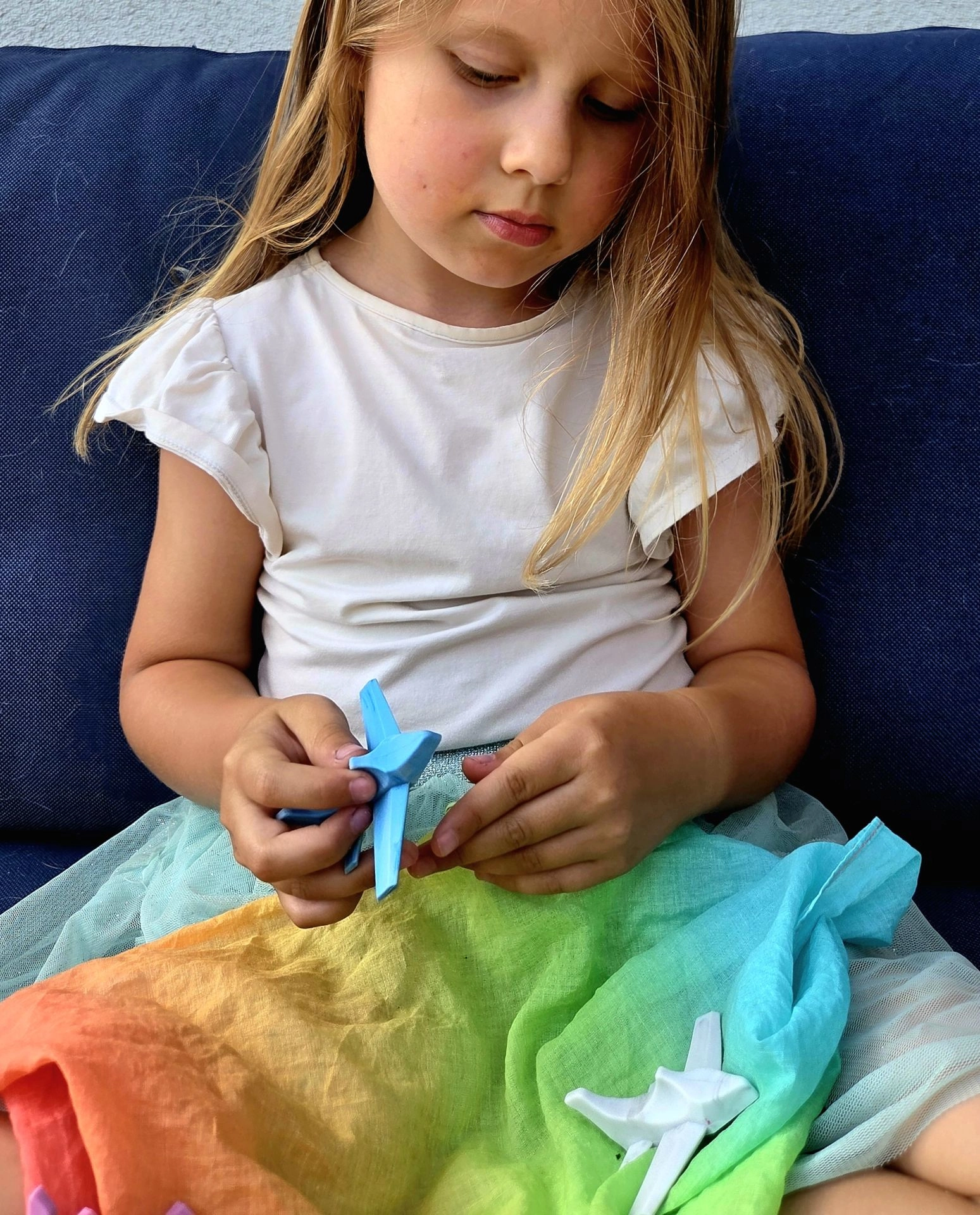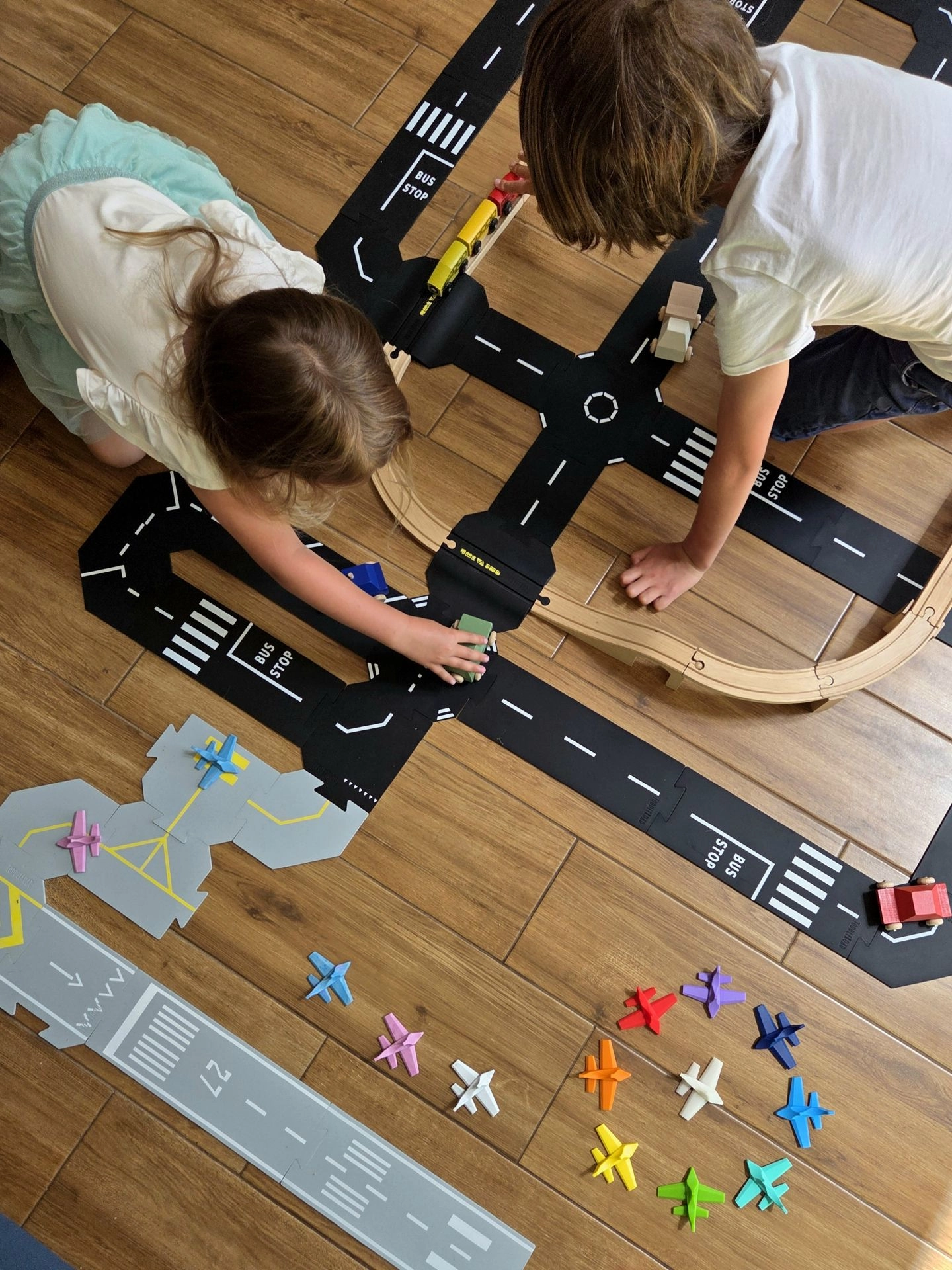 Jouer avec les avions développe l’autonomie par le jeu libre, renforce la représentation spatiale et la coordination œil–main. La boîte fonctionnelle imprimée en hangar sert non seulement au rangement, mais aussi d’élément à part entière de l’univers de jeu.
