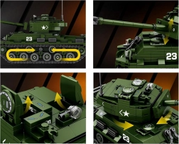 Donnez vie à l’emblématique char américain SHERMAN M4A3E8. Cet ensemble officiellement licencié WORLD OF TANKS restitue fidèlement la silhouette, la tourelle, le canon et le châssis de l’« Easy Eight ». Grâce à ses parties mobiles bien conçues et à sa structure robuste, le modèle est parfait pour l’exposition comme pour des mises en scène d’action.