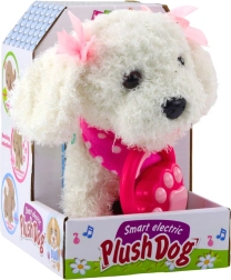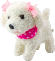 Ce petit chien interactif en peluche moelleuse et agréable est parfait pour les câlins et les jeux de rôle. Grâce à la laisse en forme de patte incluse, vous pouvez l’emmener en « promenade », où il marchera et émettra des sons comme un vrai chiot. Le foulard rose à pois et les jolis petits nœuds donnent au jouet un look charmant.