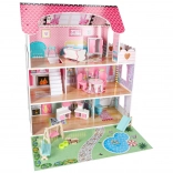 Trois étages, balcon, escalier et jardin avec aire de jeux. Les enfants peuvent déplacer librement le mobilier et créer d’innombrables scénarios de jeu.