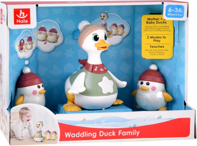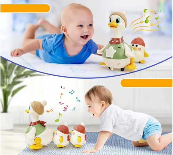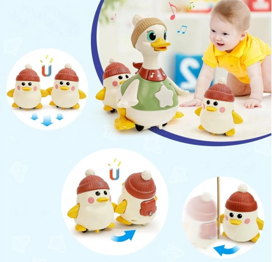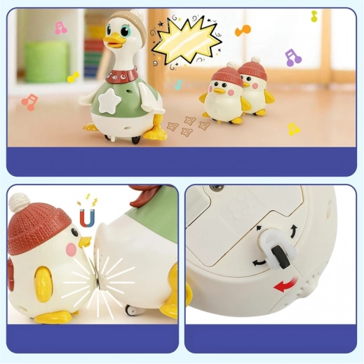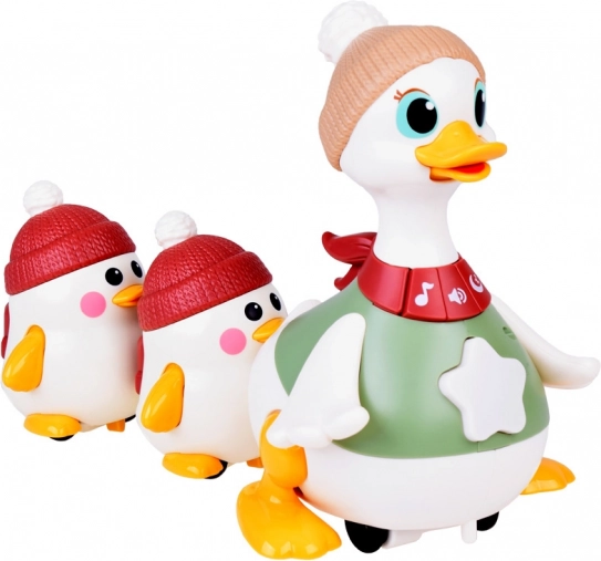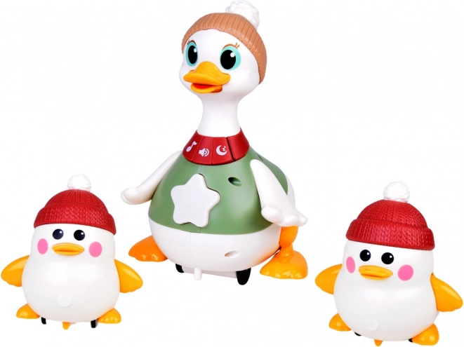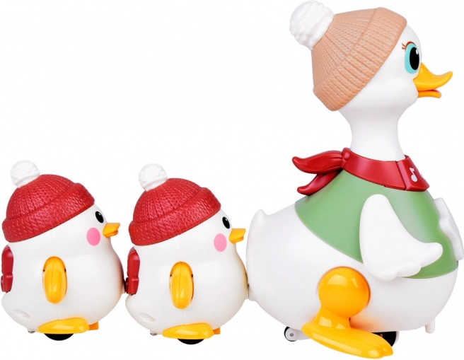 famille de canards interactive – cane qui marche avec deux canetons, lumières et sons