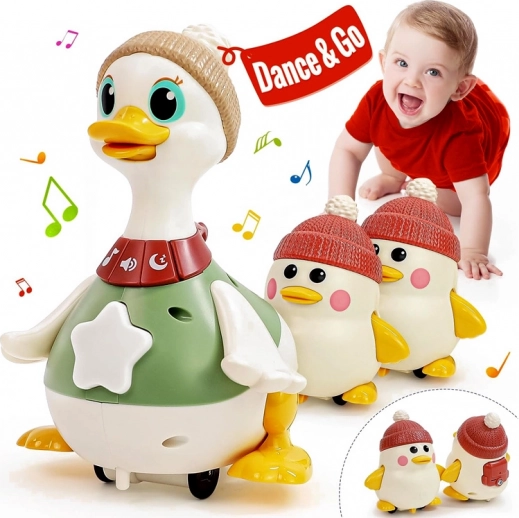 Découvrez un jouet interactif qui favorise la motricité globale et fine, la coordination œil–main et la compréhension de la cause et de l’effet. La maman cane peut avancer seule ou rester sur place et chanter, tout en bougeant son bec et avec une douce étoile lumineuse sur le ventre. Après une période d’inactivité, elle s’éteint automatiquement pour économiser les piles.