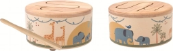 Découvrez la joie des premiers rythmes avec un tambour en bois pour enfants aux motifs safari. Ce tambour sûr et résistant en bois naturel, décoré de jolies illustrations d’éléphants, de girafes et de zèbres, est livré avec une baguette et tient parfaitement dans les petites mains. Il favorise la motricité fine, le sens du rythme et la perception musicale – un choix idéal pour les premières explorations musicales.