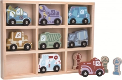 Ce set polyvalent apporte des heures de jeu et d’apprentissage. La variété des véhicules – de la citerne au camion de pompiers et à la voiture de police jusqu’à la pelleteuse – inspire la création d’histoires et de scénarios. L’étagère pratique sert de solution de rangement élégante et d’accessoire déco, gardant les jouets toujours à portée de main.