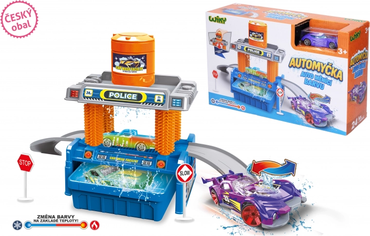 Set ludique pour petits conducteurs : station de lavage auto de 35 cm avec une petite voiture qui change de couleur selon la température. Il suffit d’utiliser de l’eau froide ou tiède/chaude et d’observer la transformation magique. La station possède un réservoir souple pour un dosage facile et la petite voiture a des roues libres pour une conduite fluide. Un jouet idéal pour stimuler l’imagination et les sens.
