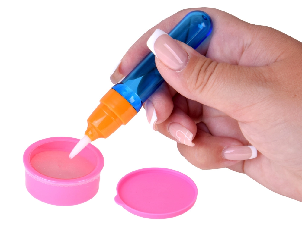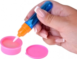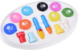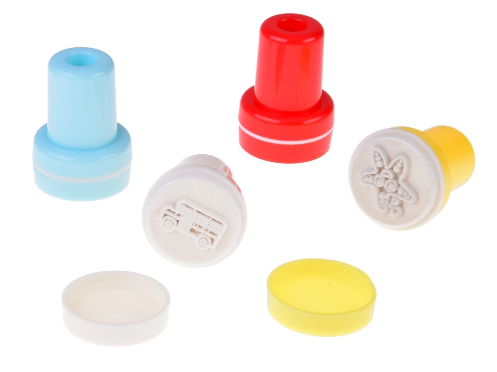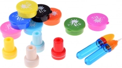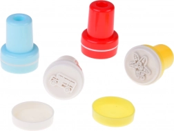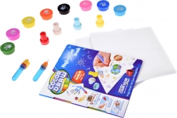 Créez des motifs originaux grâce aux tampons colorés et aux embouts. Les enfants réalisent facilement des décorations, des pois et de simples motifs.