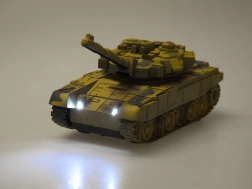 Les effets de tir et les feux allumés créent l’atmosphère d’une véritable bataille. L’activation se fait via le bouton noir situé à l’arrière du char.