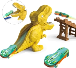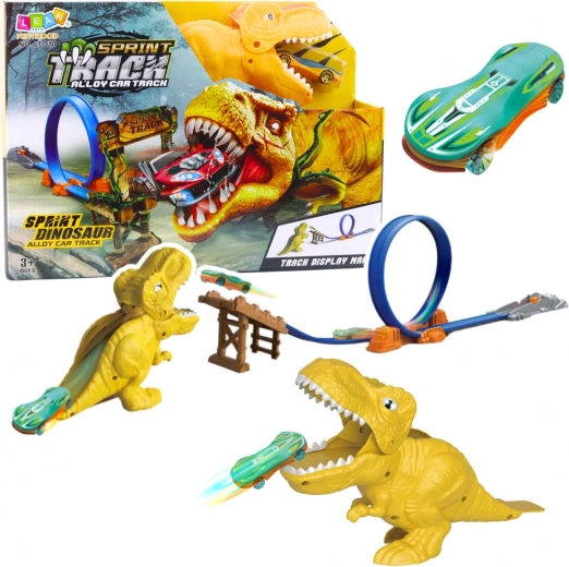 Circuit automobile avec catapulte et motif dinosaure