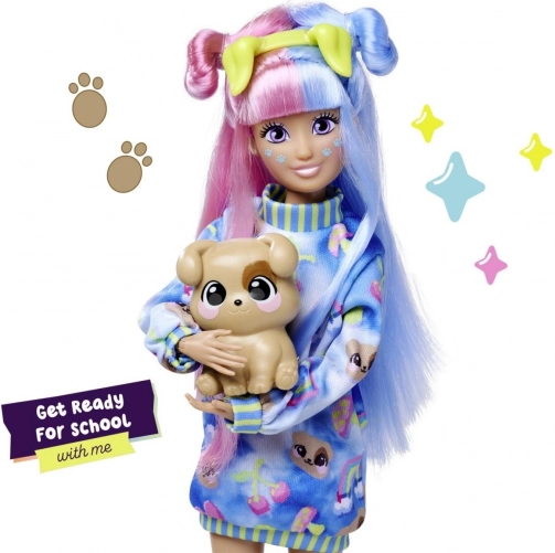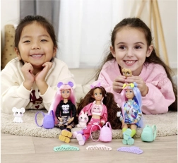 La poupée Kawaii Hi Mia apporte beaucoup de plaisir aux enfants grâce à ses cheveux extra longs qui peuvent être brossés, décorés et stylés avec des accessoires colorés. Un adorable chien, Choco, complète les histoires et stimule l’imagination lors du jeu.