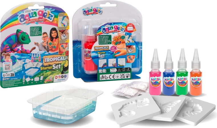 Découvrez la création ludique avec AQUA GELZ – un kit amusant grâce auquel les enfants réalisent facilement des figurines en gel coloré. Mélangez la poudre spéciale avec de l’eau, choisissez un moule, remplissez‑le de gels colorés puis immergez‑le brièvement. En un rien de temps, l’image plate se transforme en une figurine 3D toute douce qui se détache d’elle‑même du moule.