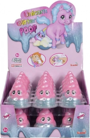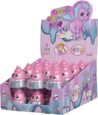 Slimy Unicorn slime pétaradant en gobelet, effet scintillant rose‑turquoise. 80 g de fun pour enfants et adultes. Idée cadeau idéale, conditionné en présentoir de 24 pcs.