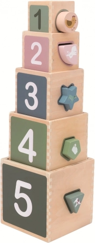 Découvrez un jouet ludique et éducatif pour les tout-petits : une tour en bois empilable aux douces couleurs pastel sur le thème de la ferme. En jouant, les enfants développent leur motricité fine, leur raisonnement logique et apprennent les chiffres, formes et couleurs. Chacun des 5 cubes présente de jolis animaux, les gourmandises qu’ils mangent et des chiffres pour un apprentissage facile. Le set comprend également des formes à encastrer pour trier et améliorer la coordination.