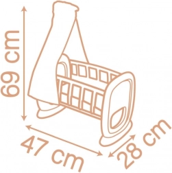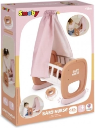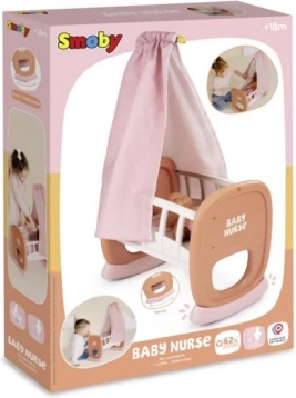 Adorable berceau pour poupées SMOBY Baby Nurse avec baldaquin en tissu pour un sommeil paisible et un doux bercement. Sert de berceau et de petit lit, baldaquin facilement amovible et lavable, et plastique de qualité simple à essuyer. Convient aux poupées jusqu’à 42 cm et fabriqué en France avec une part de matériaux recyclés.