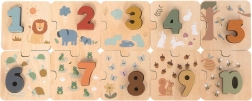 Le puzzle de comptage en bois avec animaux associe apprentissage et jeu. Chaque pièce carrée en bois naturel affiche un chiffre et la même quantité de motifs adorables – par exemple 9 glands avec un écureuil, 8 papillons avec une petite fleur et 7 grenouilles. Les enfants acquièrent ainsi facilement la reconnaissance des chiffres et les bases du comptage.