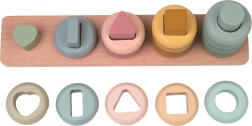 Ce puzzle Montessori ingénieux propose cinq tiges en bois aux profils variés – du rond et du cœur jusqu’au carré, au rectangle et au triangle. Les enfants emboîtent progressivement des anneaux et des éléments colorés correspondant à la forme de chaque tige, entraînant naturellement la pensée logique, la perception spatiale et la patience.