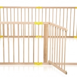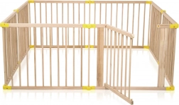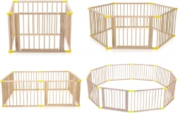 Ce spacieux parc en bois XXL est la solution idéale pour les parents souhaitant offrir à leur enfant un espace stable et sécurisé à la maison comme en déplacement. Les huit panneaux solides avec connecteurs en plastique résistants se configurent facilement en carré, rectangle, hexagone ou octogone — selon l’espace disponible et le besoin du moment.