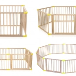 Avec 8 panneaux, composez un carré, un rectangle, un hexagone ou un spacieux octogone. Adaptez le parc à la taille de la pièce et à l’âge de l’enfant.
