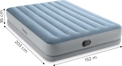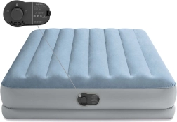 Le lit gonflable pratique INTEX est idéal comme lit d’appoint pour les invités, pour le chalet ou en voyage. La structure surélevée facilite l’allongement et le lever, tandis que la surface en velours est agréable au toucher et empêche le glissement des draps. La pompe électrique intégrée prépare le lit en environ 3 minutes et permet un dégonflage tout aussi rapide.