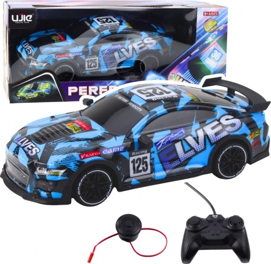 Voiture de sport RC rapide de couleur bleue qui ravira tous les petits pilotes. Grâce à la télécommande, elle roule dans toutes les directions et offre une maîtrise totale de la conduite. Un klaxon (buzzer) réaliste renforce le plaisir, tandis que le design sportif et la silhouette aérodynamique confèrent à la voiture un caractère de course.