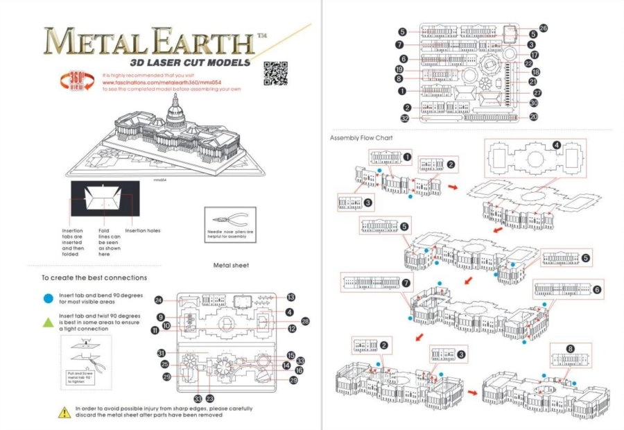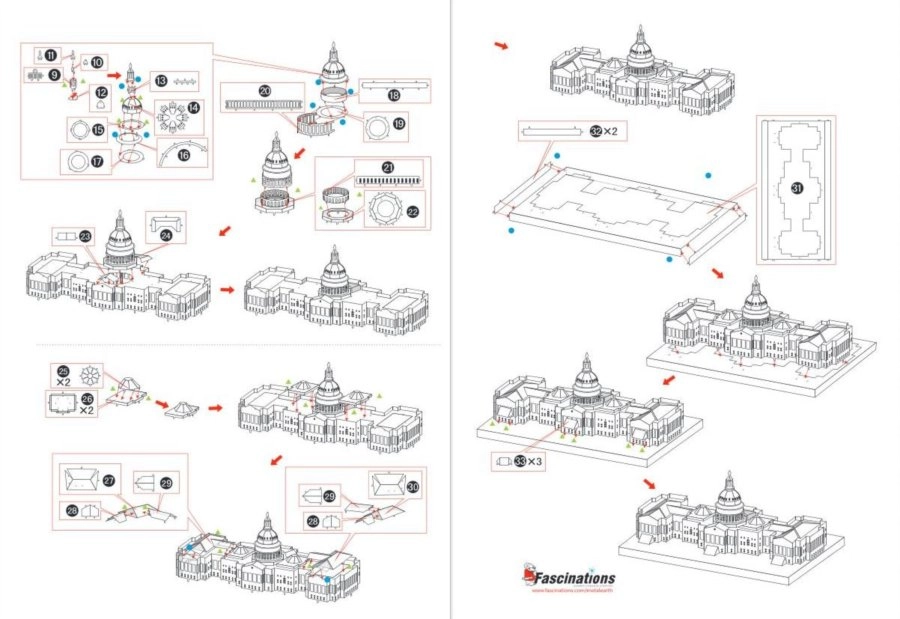Le puzzle 3D METAL EARTH séduit par la qualité de sa fabrication et la fidélité de ses détails. À partir de deux plaques d’acier de 11 × 11 cm, vous détachez les pièces que vous assemblez par clips et pliages pour former un modèle impressionnant du Capitole. Le résultat est une pièce élégante, au lustre métallique, qui ravira les collectionneurs et les amateurs d’architecture.