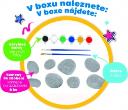 Découvrez un coffret créatif pour peindre sur des galets, qui permet aux enfants de transformer de simples cailloux en œuvres d'art uniques. Le set contient tout le nécessaire pour créer immédiatement – pinceaux, peintures et galets – afin de développer l'imagination, la motricité fine et la créativité. Convient aux enfants à partir de 4 ans.