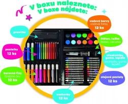 Pratique et créatif, ce set pour petits artistes dans une mallette en plastique résistante offre tout le nécessaire pour peindre et dessiner. Idéal à la maison, à la maternelle et en voyage. Il contient un assortiment varié d’accessoires qui développent l’imagination des enfants et la motricité fine, dont des crayons de couleur, des feutres et des aquarelles.