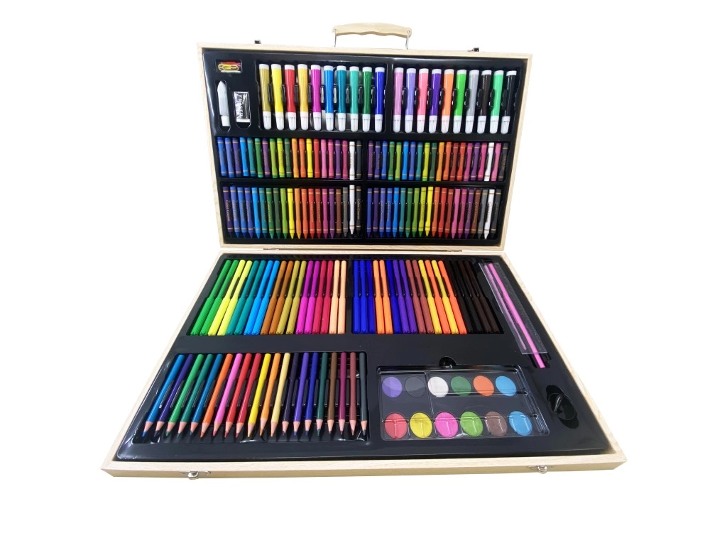 Ce set artistique complet est un excellent choix pour débutants comme pour utilisateurs avancés. Vous y trouverez une large palette de couleurs et d’outils pour diverses techniques – de l’aquarelle aux pastels, en passant par les crayons de couleur classiques. Grâce à la mallette en bois portable, tout reste en sécurité et bien organisé au même endroit.