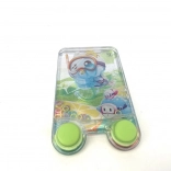Le jeu d’eau Plongeurs propose un divertissement simple mais captivant qui t’absorbera longtemps. En appuyant sur les boutons, tu crées un jet d’eau qui propulse les anneaux vers les pointes – l’objectif est de placer tous les anneaux sur deux pointes cibles. Idéal pour les moments de détente, en voiture, en train ou à la maison.
