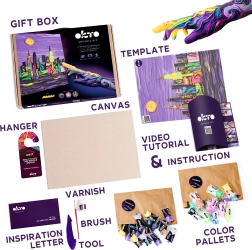 Ce kit artistique OKTO vous guide pas à pas dans la technique de la peinture avec pâte de modelage. Vous créerez une image en relief spectaculaire avec le motif iconique de la skyline de NEW YORK, qui embellira votre intérieur ou fera un cadeau personnalisé.