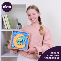 Découvrez le plaisir du modelage avec le kit créatif Okto. Grâce au guide illustré inclus, façonnez facilement une charmante scène 3D dans un cadre sur le thème Lapin sur la lune. Avec la pâte autodurcissante, nul besoin de four ni d’équipement supplémentaire – une fois sec, il suffit d’appliquer un vernis acrylique pour un rendu durable et brillant.