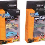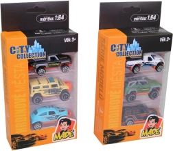 Ce set propose trois voitures finement détaillées au format 1:64, idéales pour les courses à la maison comme pour enrichir une collection. La combinaison robuste de métal et de plastique garantit une longue durée de vie et un excellent rendu.