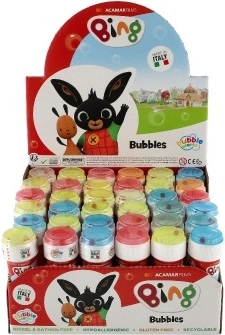 Le souffleur de bulles BING 60 ml est une petite idée parfaite pour le jeu quotidien, les anniversaires et les fêtes d’enfants. Grâce aux personnages populaires de la série BING, il ravira chaque petit fan. Souffler des bulles de manière simple favorise la coordination, la créativité et le temps passé à l’air frais.