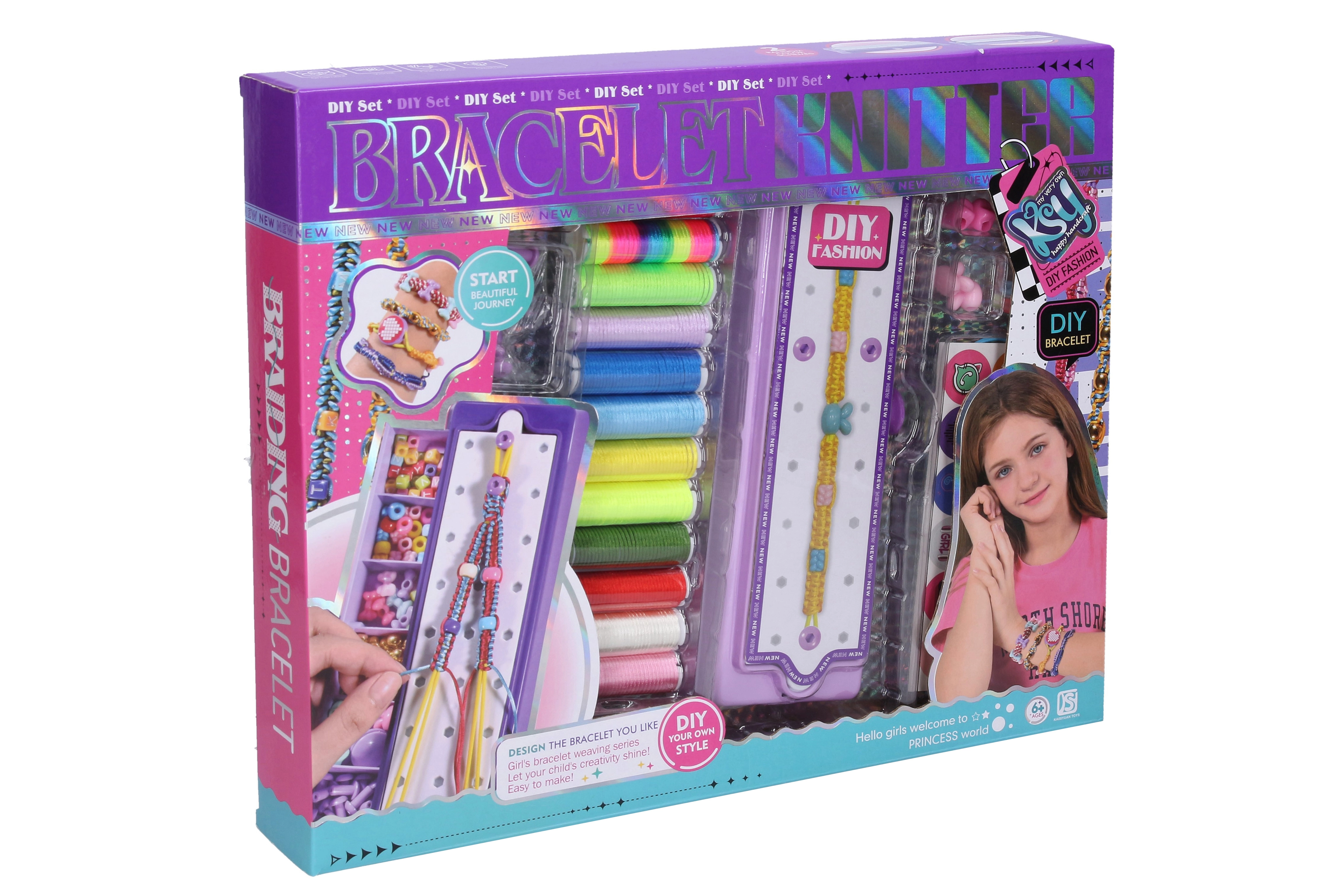 Tout est rangé dans une boîte compacte qui sert non seulement au stockage, mais aussi à tresser confortablement. Choisissez parmi différentes couleurs de fils, combinez les perles et personnalisez le résultat avec des autocollants selon vos envies.