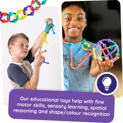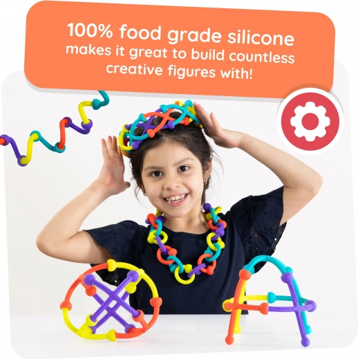 Le kit de construction en silicone PLIP KIT associe avec plaisir flexibilité et simplicité d’assemblage. Les pièces en silicone de qualité alimentaire sont agréables au toucher, sûres et résistantes à un usage quotidien. Les enfants peuvent créer une grande variété de structures flexibles, expérimenter avec les formes et améliorer la coordination œil-main.