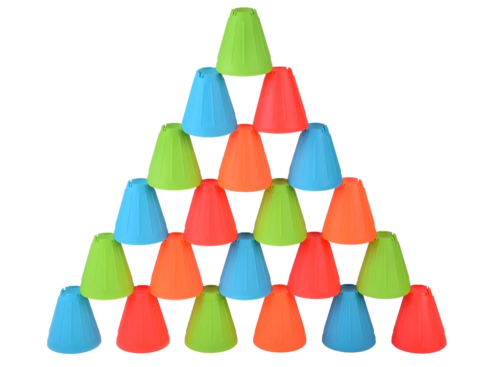 Les gobelets coniques avec des cavités internes s’imbriquent facilement et gardent leur forme. Idéal pour construire des tours, des pistes et des obstacles.