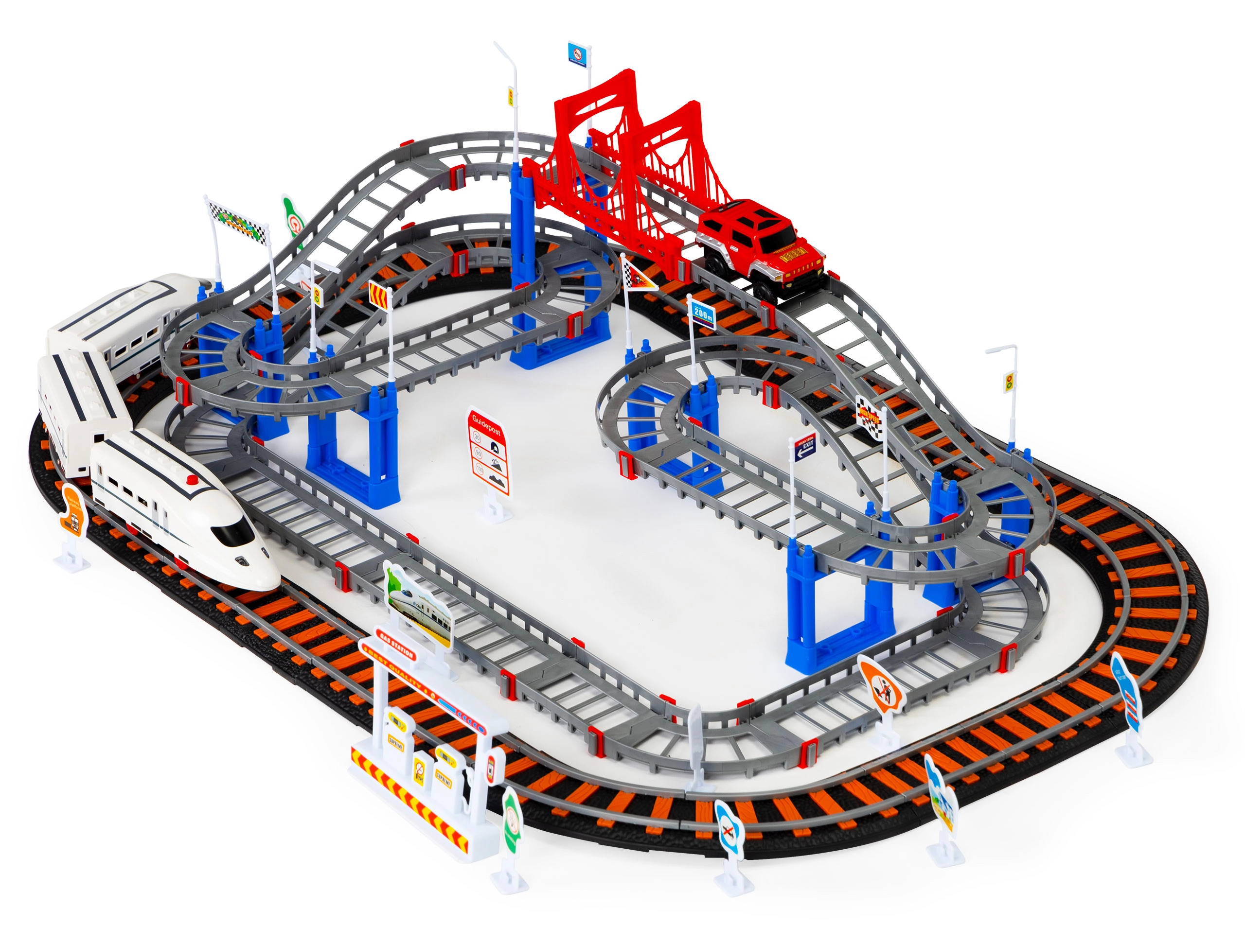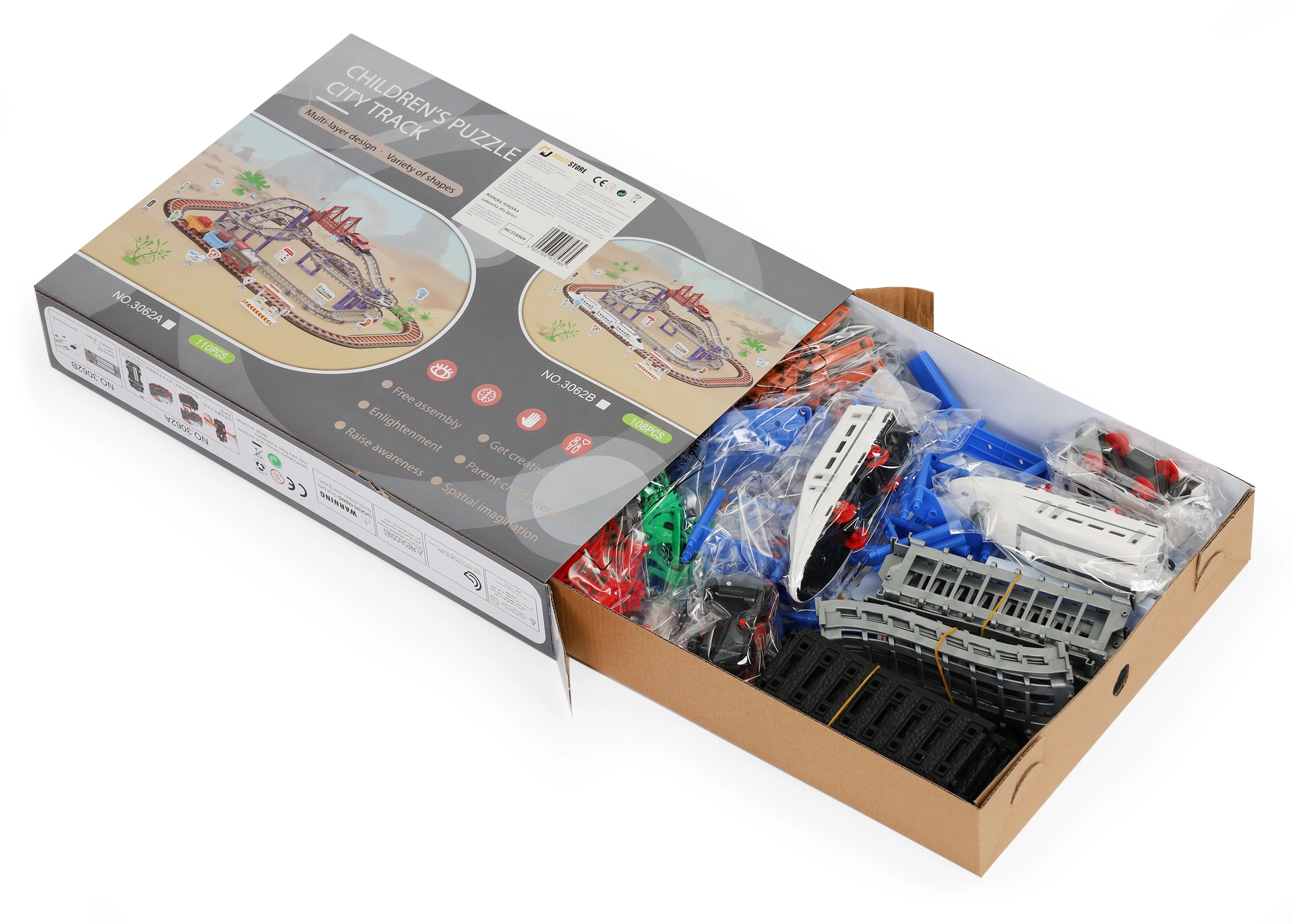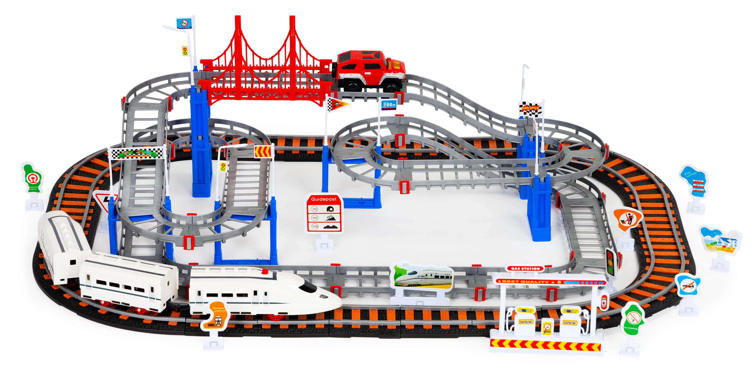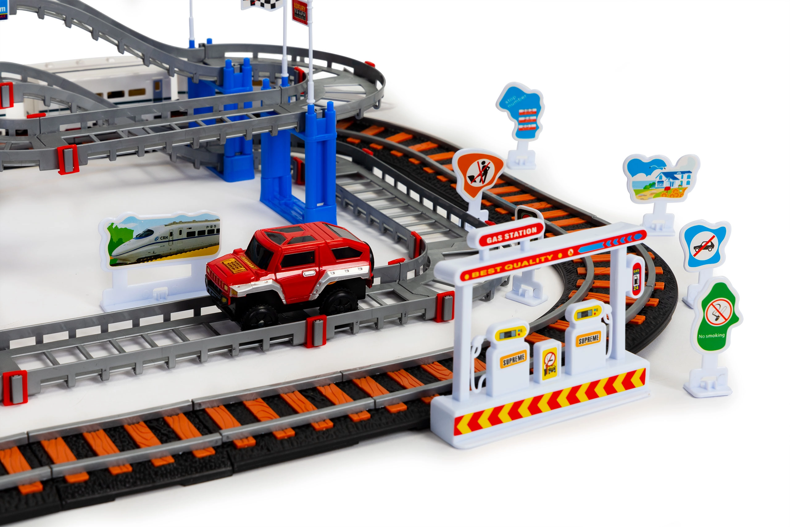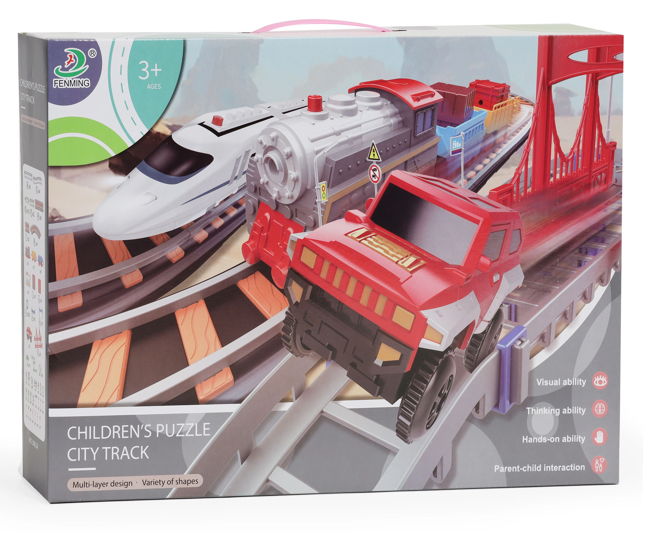 Ce kit de construction complet de 108 pièces offre un univers à double voie pour les jeunes passionnés de trains et de voitures. Deux trajets distincts – l’un pour un train à grande vitesse avec trois wagons et l’autre pour la petite voiture tout-terrain – permettent une circulation simultanée sans collisions. Les pièces se montent facilement et tiennent fermement, afin que les enfants puissent construire des spirales, des ponts et des rampes et créer à chaque fois un nouveau défi.