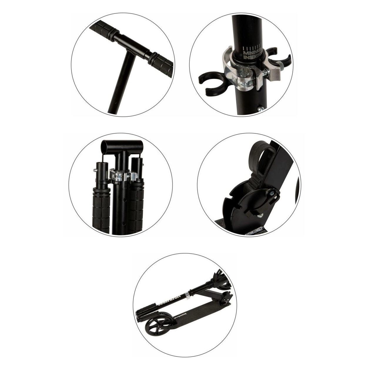 Le mécanisme de pliage pratique rend la trottinette compacte en quelques secondes. Idéale pour l’école, les transports en commun et les voyages.