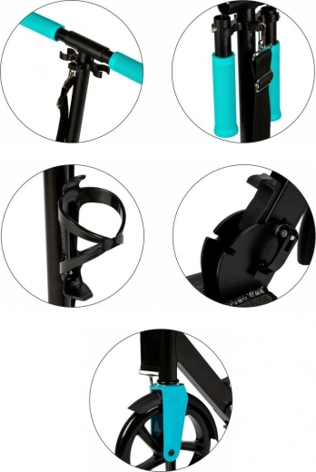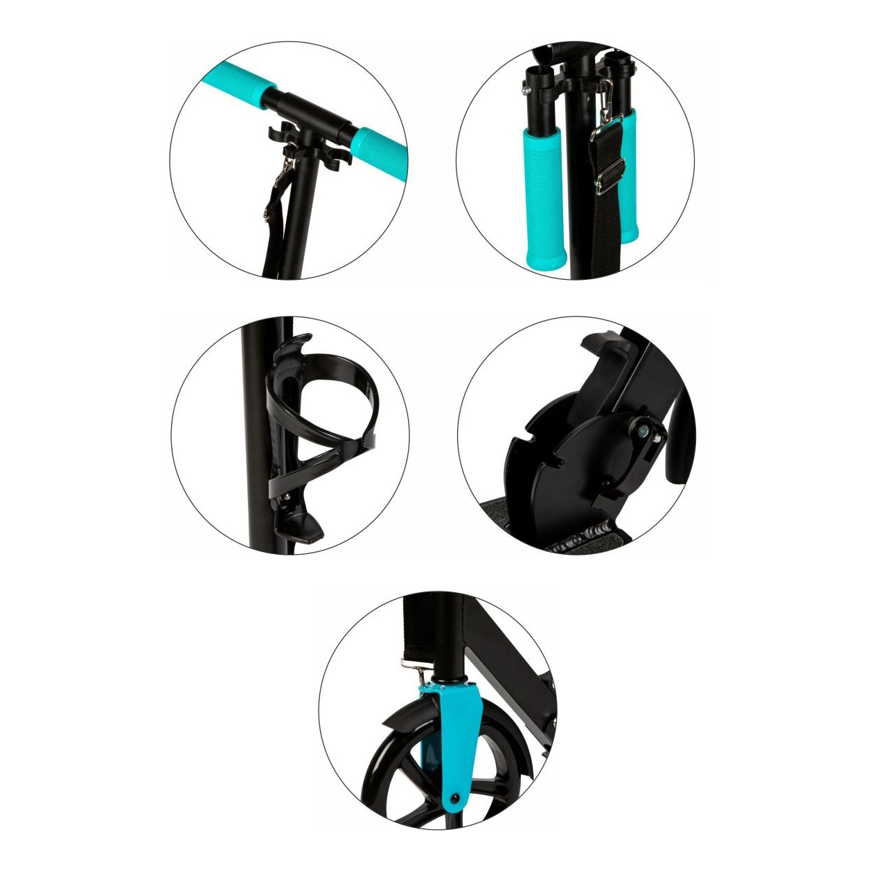 La trottinette grandit avec l’utilisateur : le guidon réglable de 91 à 101 cm assure une ergonomie correcte et une maîtrise sûre à tout âge. Les poignées ergonomiques antidérapantes augmentent le confort et le contrôle, tandis que le porte-bouteille aide à rester hydraté sur de plus longs trajets.