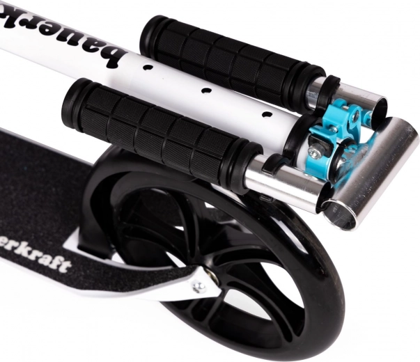Le mécanisme rabattable avec verrou de sécurité permet de plier la trottinette en un instant. La béquille intégrée facilite le stationnement sans appui.