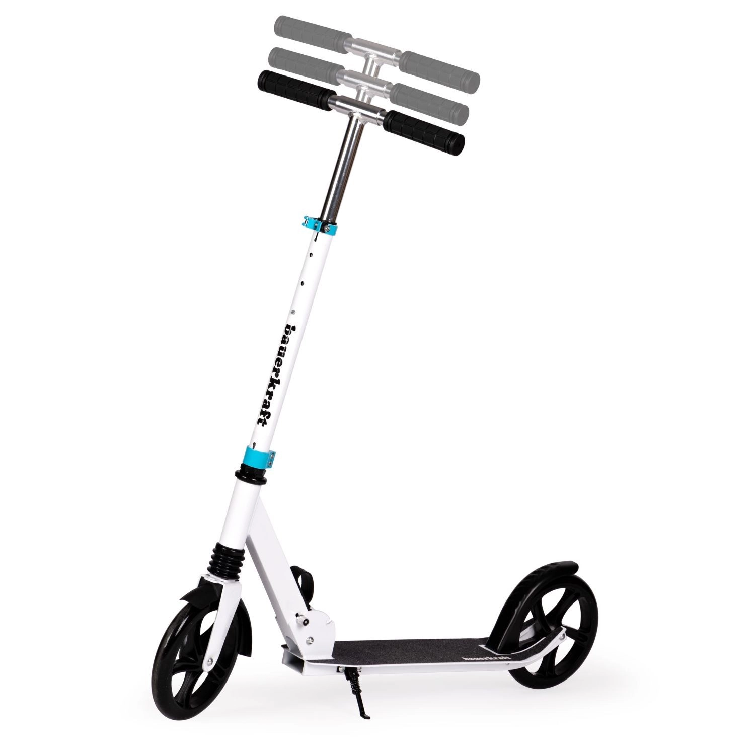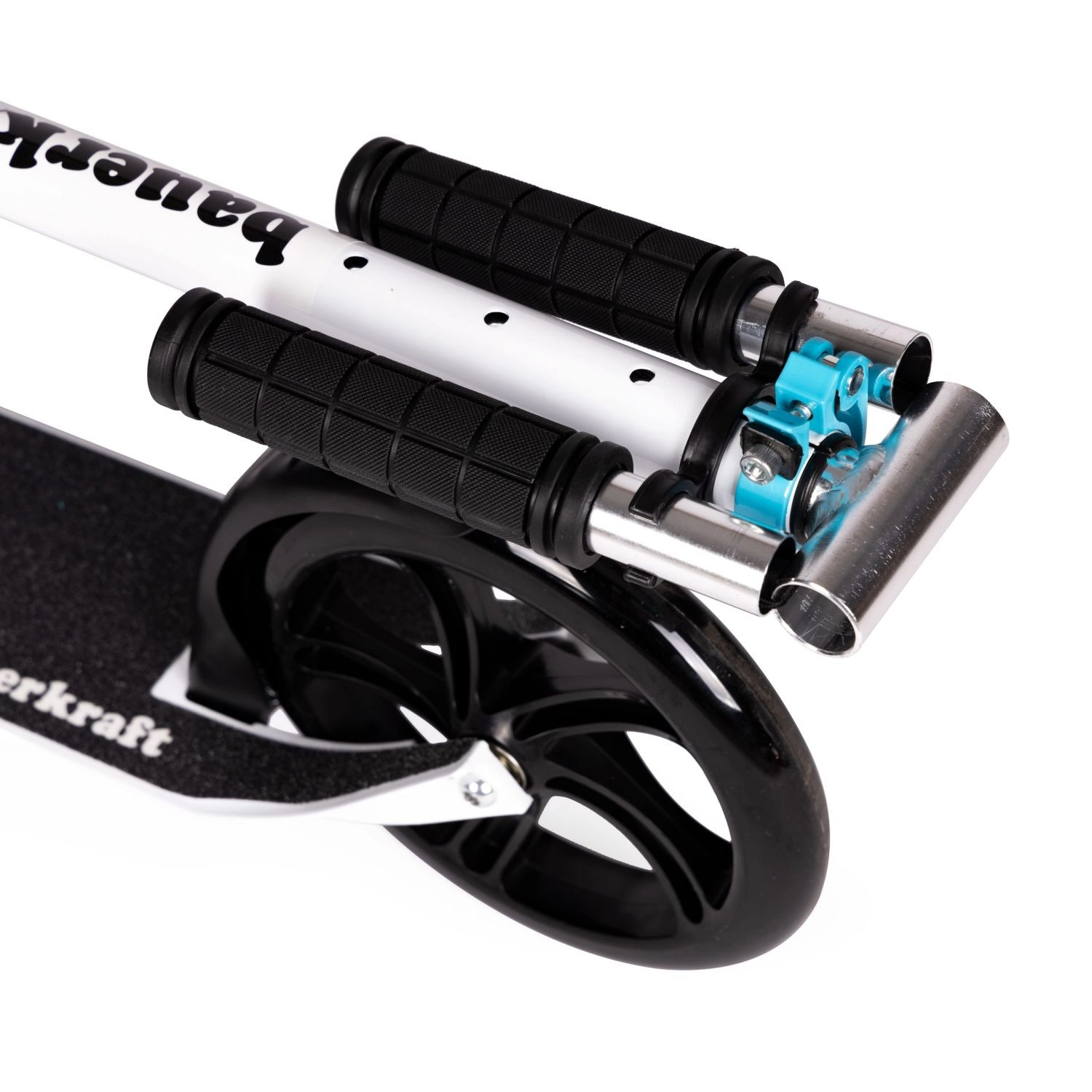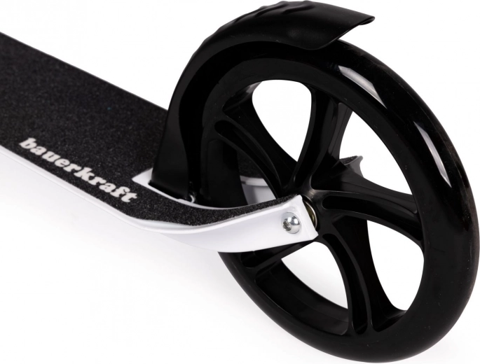 - Grandes roues de 200 mm pour la stabilité et la vitesse sur l’asphalte et les pistes cyclables