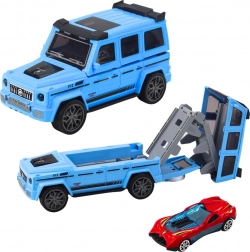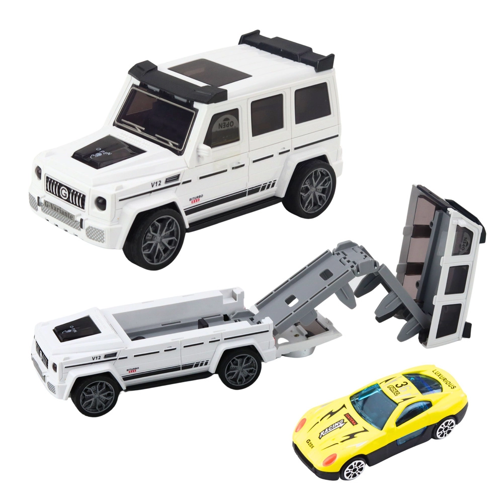 Un ensemble ludique pour de jeunes pilotes : un robuste 4x4 qui, une fois ouvert, se transforme en piste avec lanceur pour la mini-voiture cachée à l’intérieur. Avec des effets lumineux et sonores, deux variantes de couleur (blanc, bleu) et une conception sûre et résistante pour des heures de jeu.