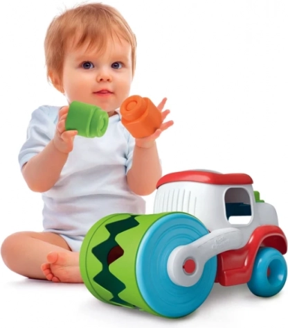 Le cylindre sensoriel Clemmy de CLEMENTONI est un « mangeur de briques » souple qui développe la perception tactile, la motricité fine et les capacités cognitives des enfants de 6 à 36 mois. Les briques souples, sûres et lavables se glissent par la fenêtre, se superposent en petites tours et se retirent par le réservoir arrière – amusement et apprentissage réunis.