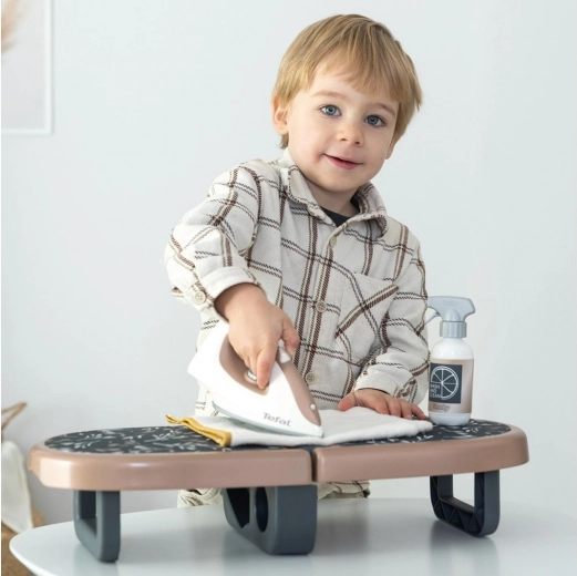 Le set de repassage pliant MiniTefal pour enfants offre un jeu de maison réaliste dans un format compact. Il comprend un table à repasser pliante, un fer à repasser jouet TEFAL avec bouton cliquable et un pulvérisateur. Grâce à son rangement facile, il est idéal pour les petits espaces et son design moderne ravira enfants et parents.