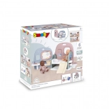 SMOBY BABY CARE est un charmant espace de jeu pour poupées qui offre aux enfants une multitude de scénarios – de l’apprentissage des habitudes d’hygiène au repas et au repos de la poupée. Son agencement pratique et ses nombreux détails favorisent l’autonomie, l’empathie et le développement de la motricité fine.