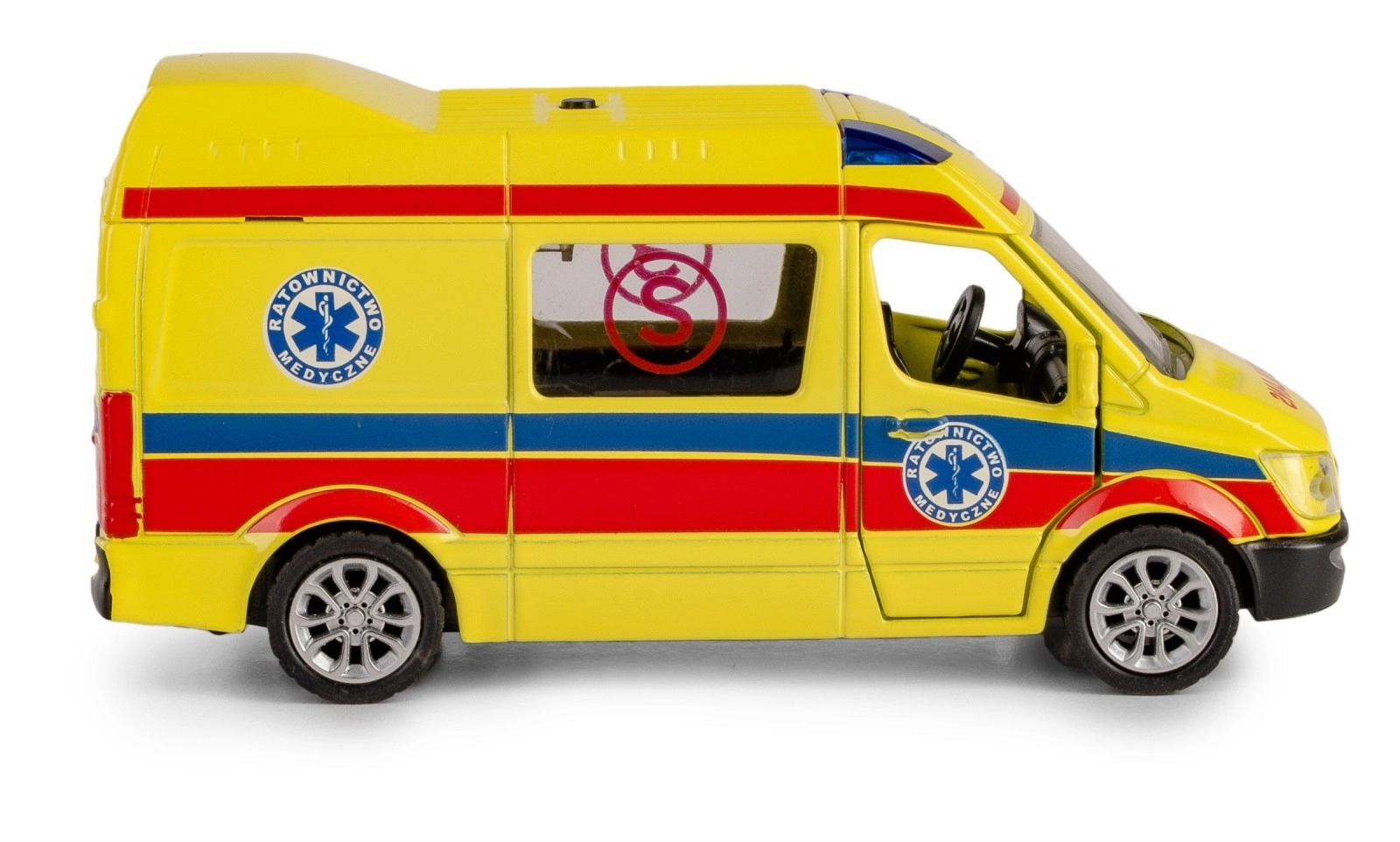 Découvrez un modèle réaliste de véhicule de secours qui ravira enfants et collectionneurs. Grâce à sa fabrication en métal avec détails en plastique, l’ambulance paraît crédible et robuste, tandis que la fonction pull-back garantit un jeu amusant sans piles.