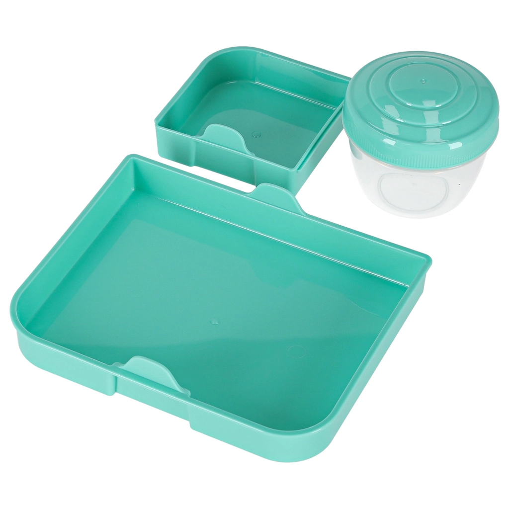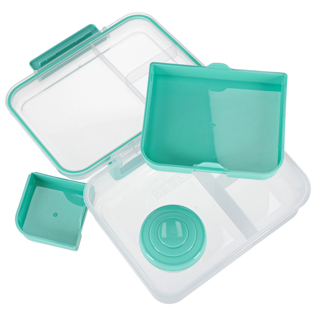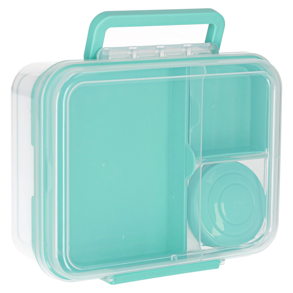 Boîte repas moderne de couleur menthe offrant un grand volume et une organisation astucieuse pour une alimentation saine au quotidien. Les inserts modulaires et les étages amovibles permettent de séparer sandwiches, salades, fruits et encas. Les éléments transparents facilitent le contrôle rapide du contenu, la construction légère se transporte facilement.
